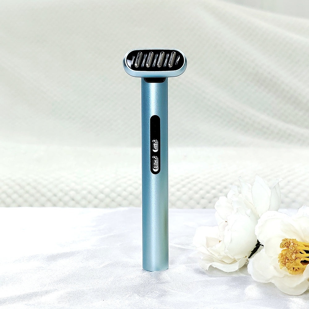 Elevate Your Skin's Potential with 5 Cutting-Edge Technologies. Our Beauty Wand combines Red Light, Blue Light, Soothing Warmth, EMS Microcurrents, and Calming Vibrations for a Holistic Skincare Experience.